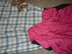 STEP 7: Insert an old comforter. Like this one I got for my high school graduation to take with me to college…..over 10 years ago!