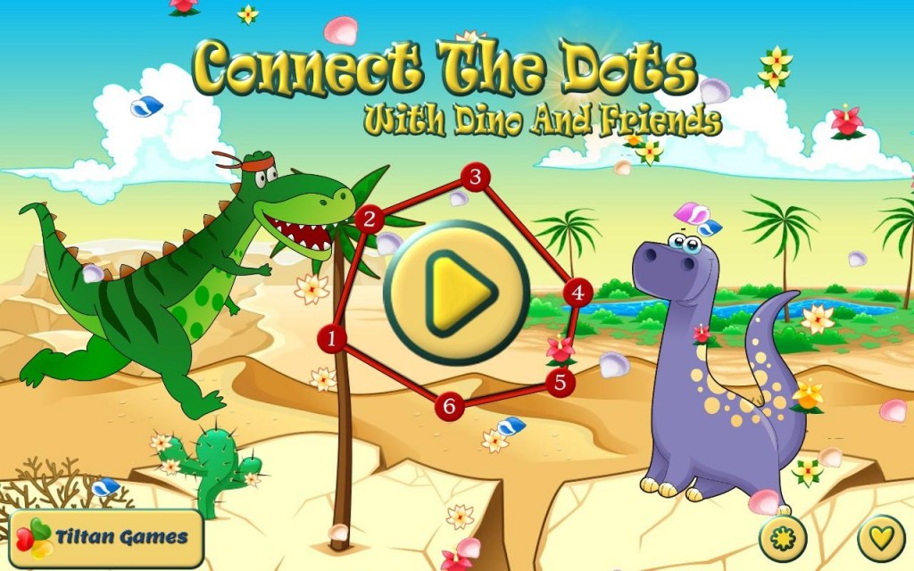 Ages 1-6. Kids can connect the dots. There are 3 different levels easy, medium, and hard. Easy has numbers 4-10. All the images aren’t dinosaurs. They have pumpkins, bottles, other animals. There are 144 connect the dot scenes, from 4 dots for the first one up to 35 dots. There is a variation which is great for kids. The music is great too!
