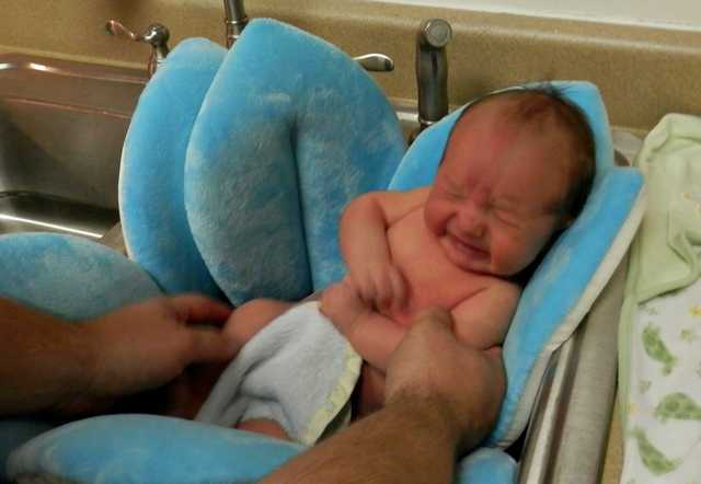 I love bathing a brand new baby.  It has become a tradition in our home, to bathe our baby, once we get home from the hospital.  Then we all snuggle in, for some cozy cuddle time.  Traditionally, we’ve always laid out a towel and bathed our baby by the sink.  Lying on the counter can’t be very comfortable, but I didn’t want to get their umbilical cord wet.  As much as I love newborn baths, always wished they could be more comfortable for my baby.